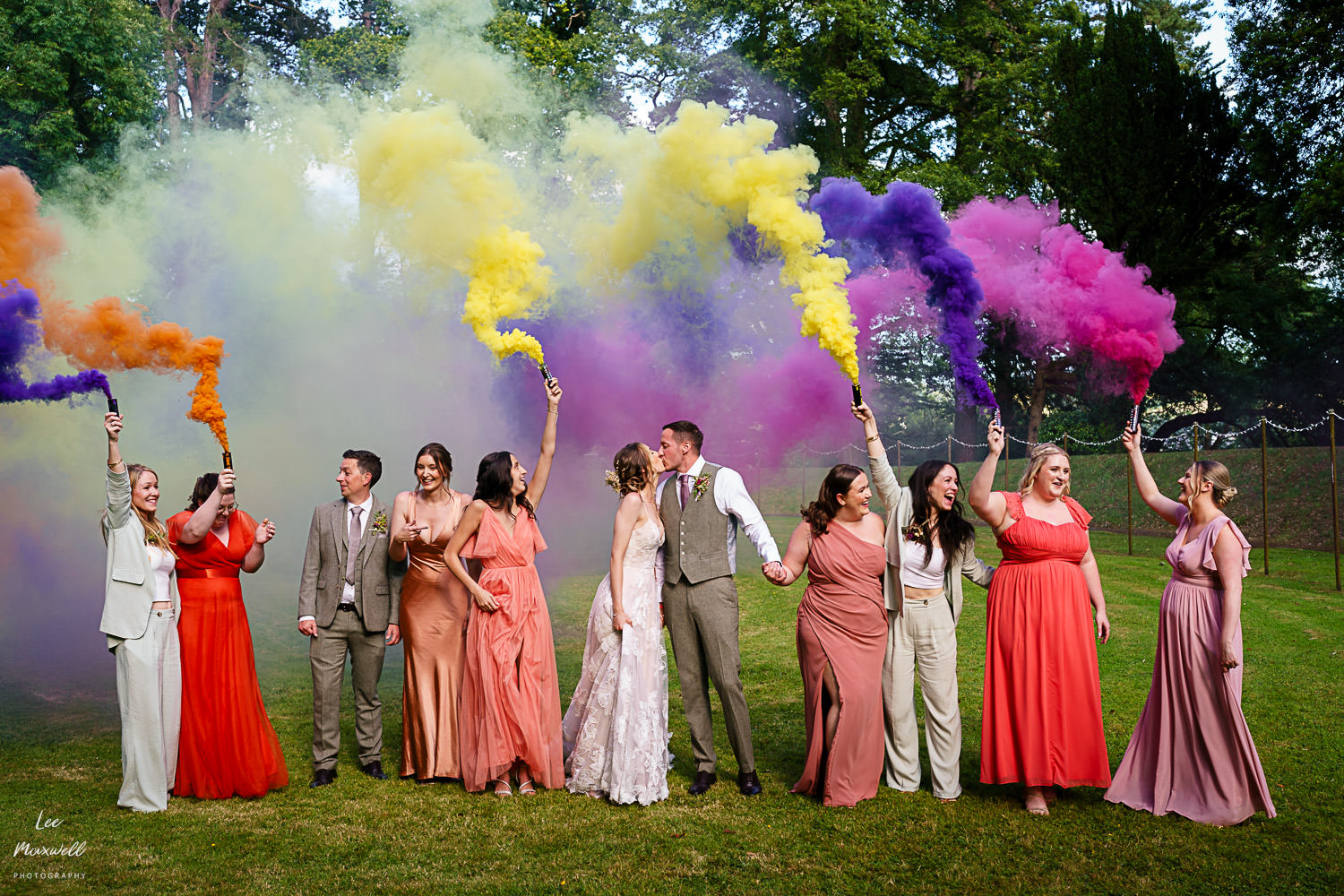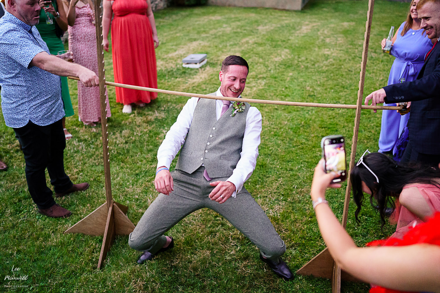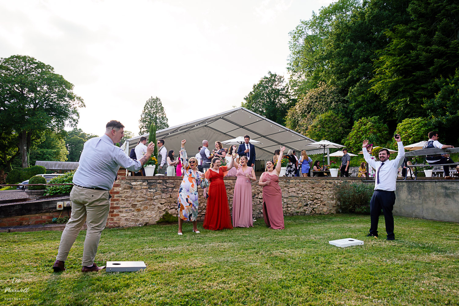 Guests made their way back to the marquee to enjoy some canapรฉs (provided by the great team at Titley Green) and some fun lawn games, followed by some lovely speeches. One of my highlights from the day was the chaos that were the smoke bombs, never plain sailing but always fun! A big congratulations to Kim and Jamie, plus all their amazing friends and family, on their big day. If you’re looking for a Devon wedding photographer, get in touch and say hi. Here are a collection of images from this wonderful wedding day…