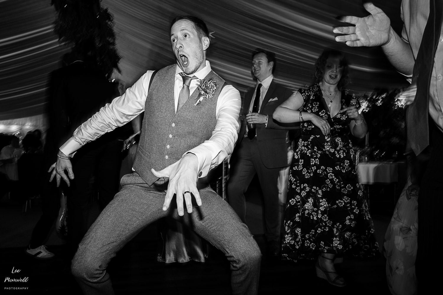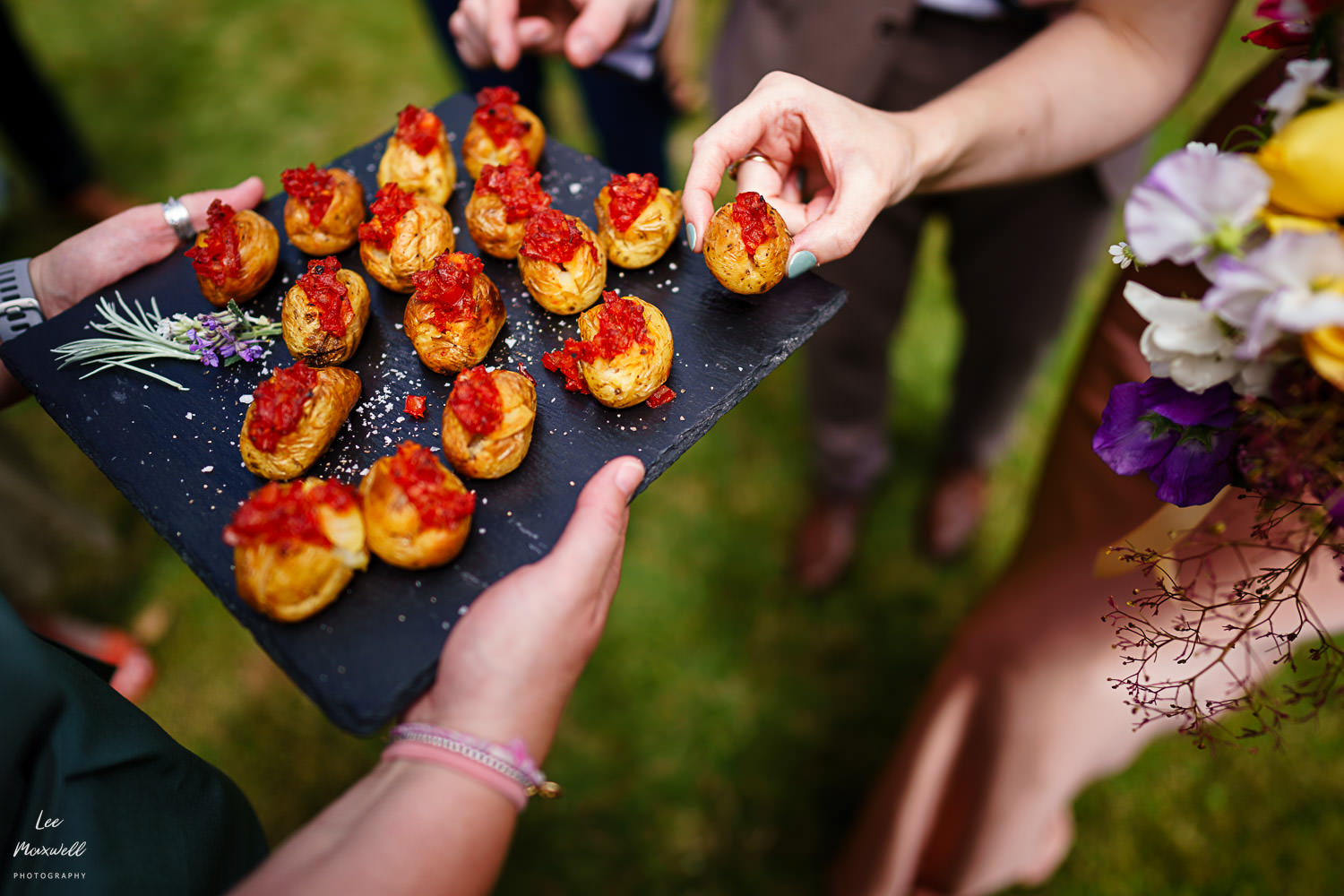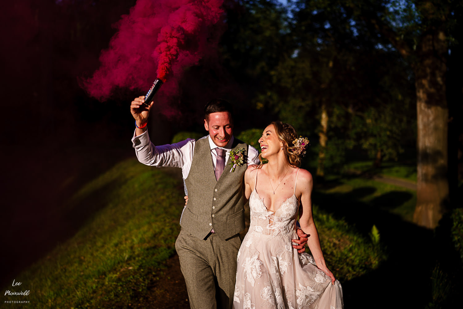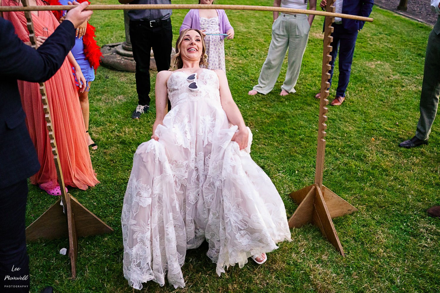 Guests made their way back to the marquee to enjoy some canapรฉs (provided by the great team at Titley Green) and some fun lawn games, followed by some lovely speeches. One of my highlights from the day was the chaos that were the smoke bombs, never plain sailing but always fun! A big congratulations to Kim and Jamie, plus all their amazing friends and family, on their big day. If you’re looking for a Devon wedding photographer, get in touch and say hi. Here are a collection of images from this wonderful wedding day…