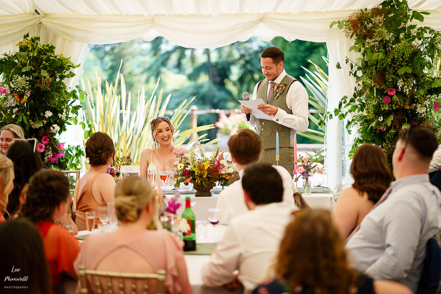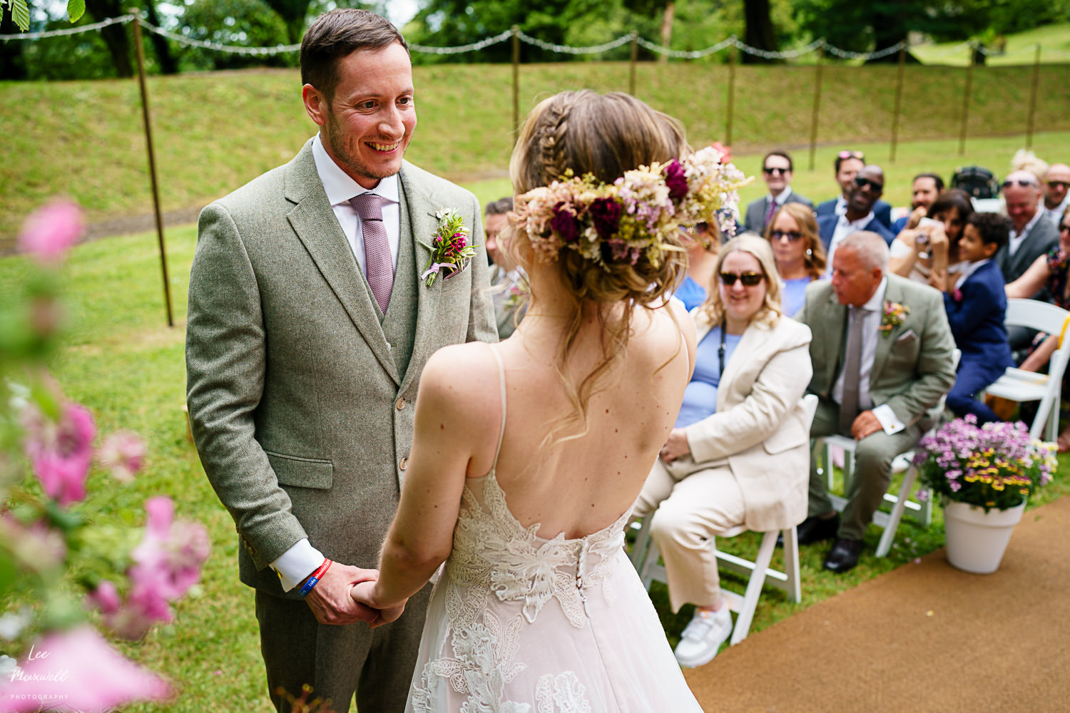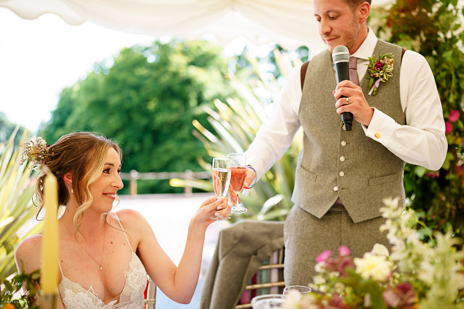 The sunken garden is like no other ceremony location I’ve seen. The entrance down the steps down from the marquee is a real treat for guests, and a bit of a leg burner on the way back up! Kim and Jamie had a wonderful ceremony, accompanied by some live harp music.