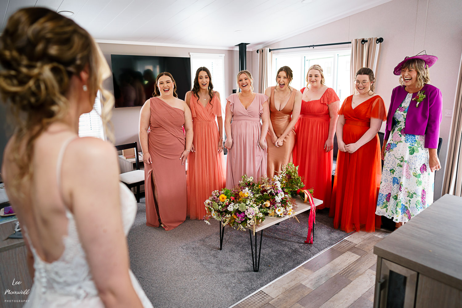 My morning started with Kim and her bridesmaids at the nearby Finlake lodges. It was a chilled fun morning which ended up providing one of my favourite shots of the day, the amazing dress reveal. Spoiler, everyone LOVED the dress.